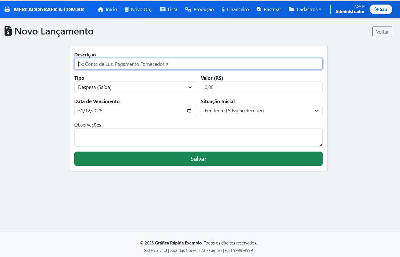 Controle total de entradas e saídas. Saiba o lucro exato da sua gráfica.